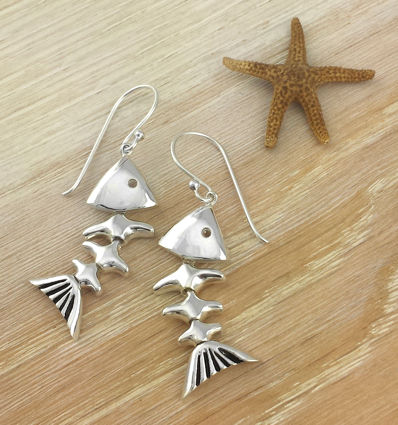 Sterling silver bonefish dangle earrings with moveable tails on French ear wires. Our sterling silver Bonefish Earrings are guaranteed to draw... Read more