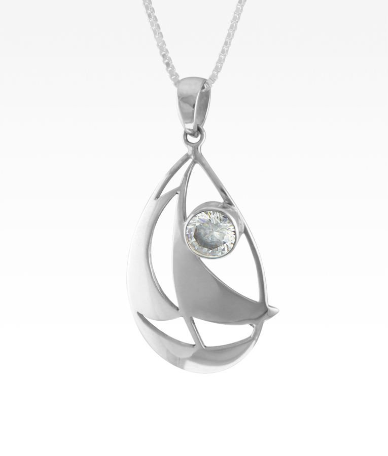 Sterling silver sailboat pendant with faceted cubic zirconia gemstone. This item is a pendant only. Chains are available here. Our... Read more