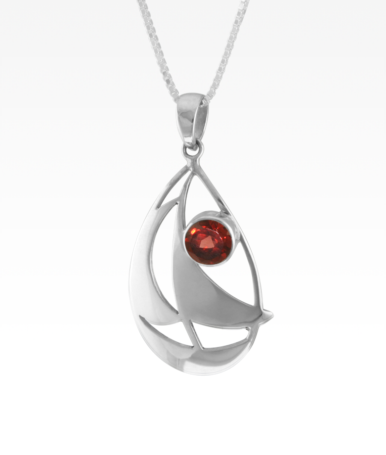 Sterling silver sailboat pendant with faceted garnet gemstone. This item is a pendant only. Chains are available here. Our breezy... Read more