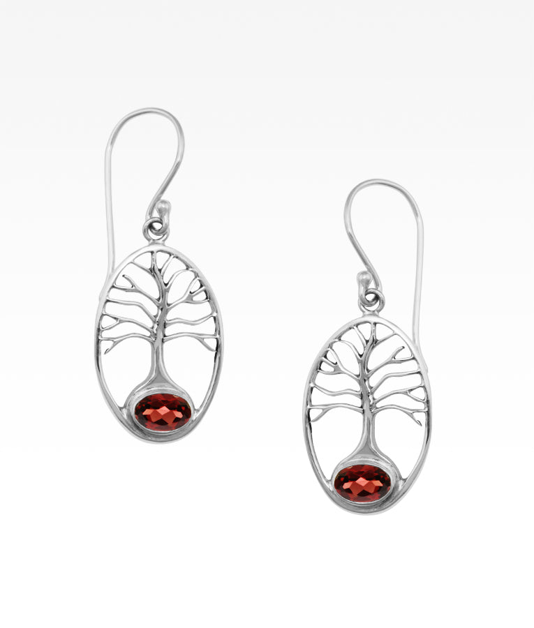 Sterling silver earrings with detailed Tree of Life, featuring garnet gemstones. The Tree of Life is a common symbol in... Read more