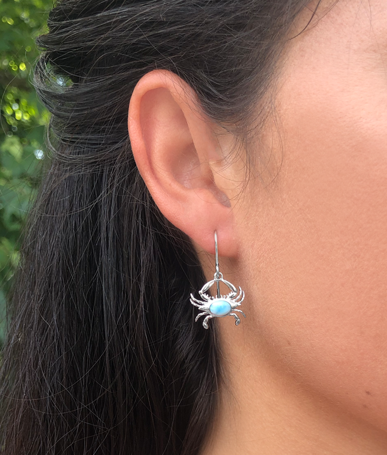 Sterling silver crab earrings with larimar on French ear wires. Our Larimar Maryland Crab Earrings are elegant and refined. These... Read more