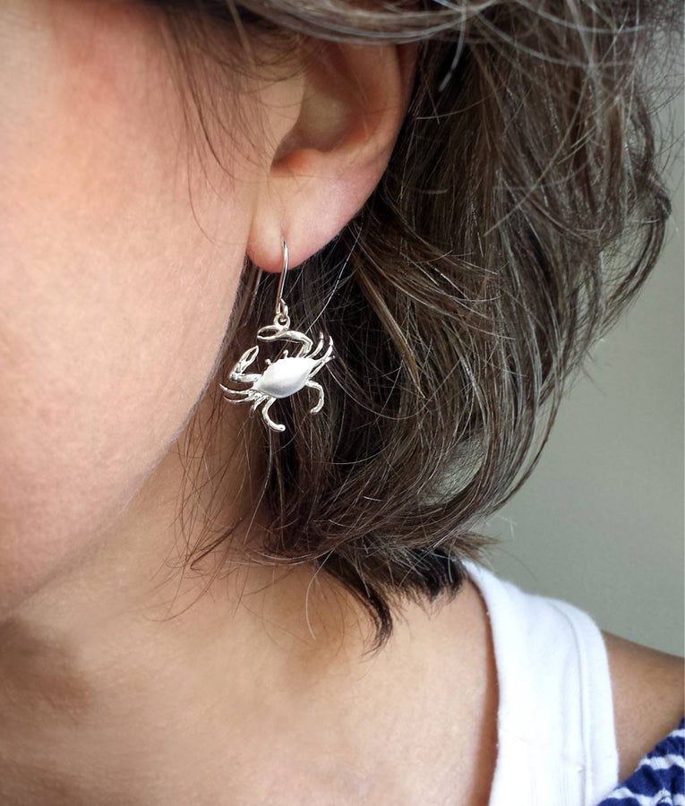Our Satin Shell Crab Earrings combine high polished and brushed satin sterling silver for a sophisticated, modern feel. These super lightweight dangle earrings hang comfortably from French ear wires. These earrings are a very refined and polished way to wear a little bit of Chesapeake Bay heritage.