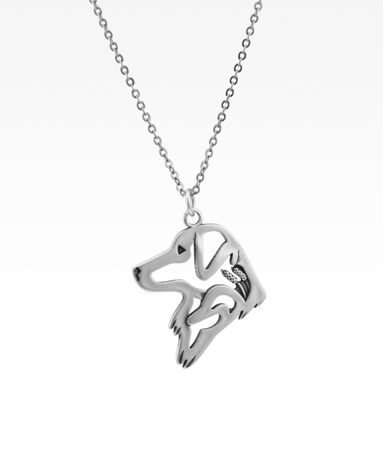 Sterling silver dog head pendant with duck and reeds detail. This item is a pendant only. Chains are available here. Read more
